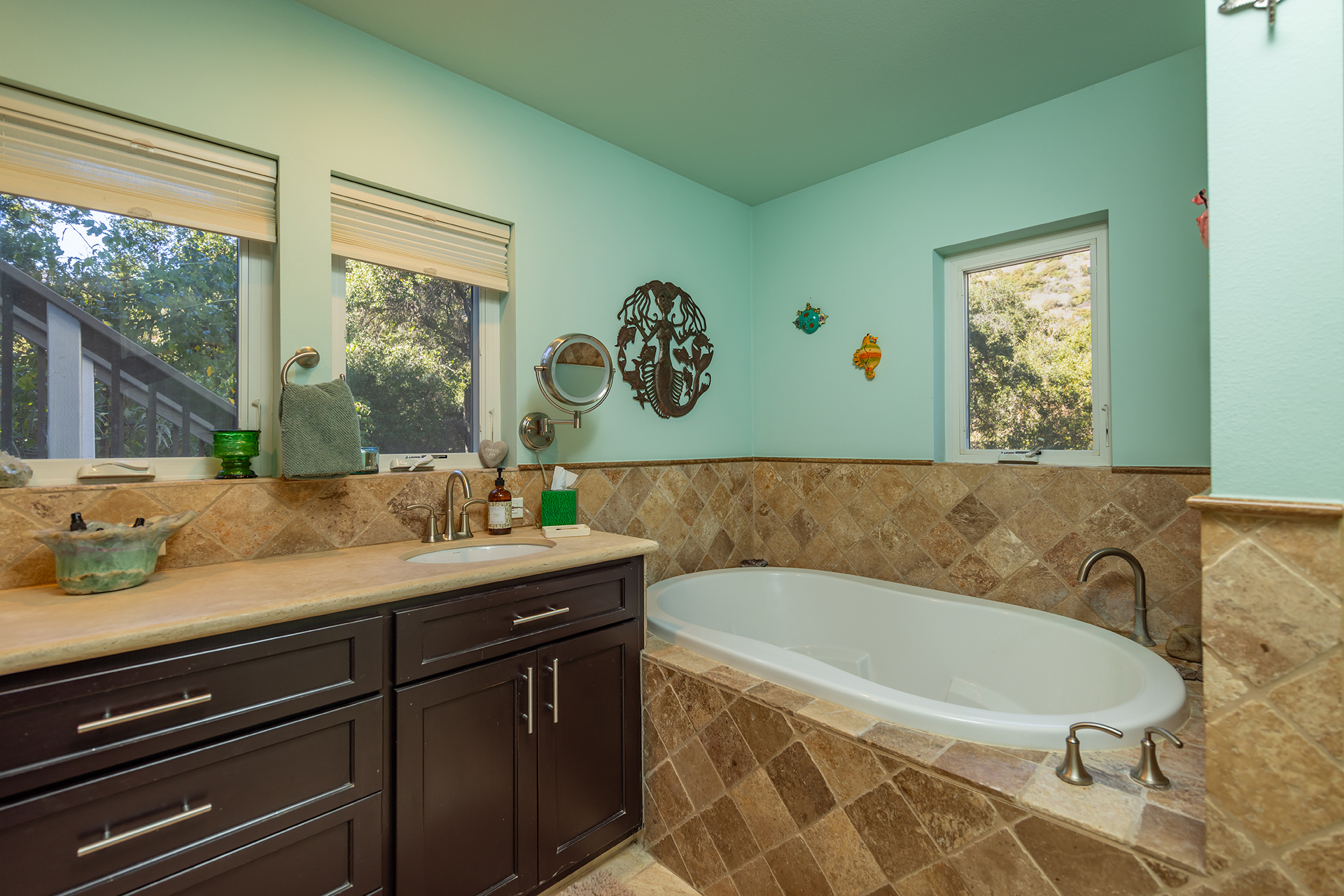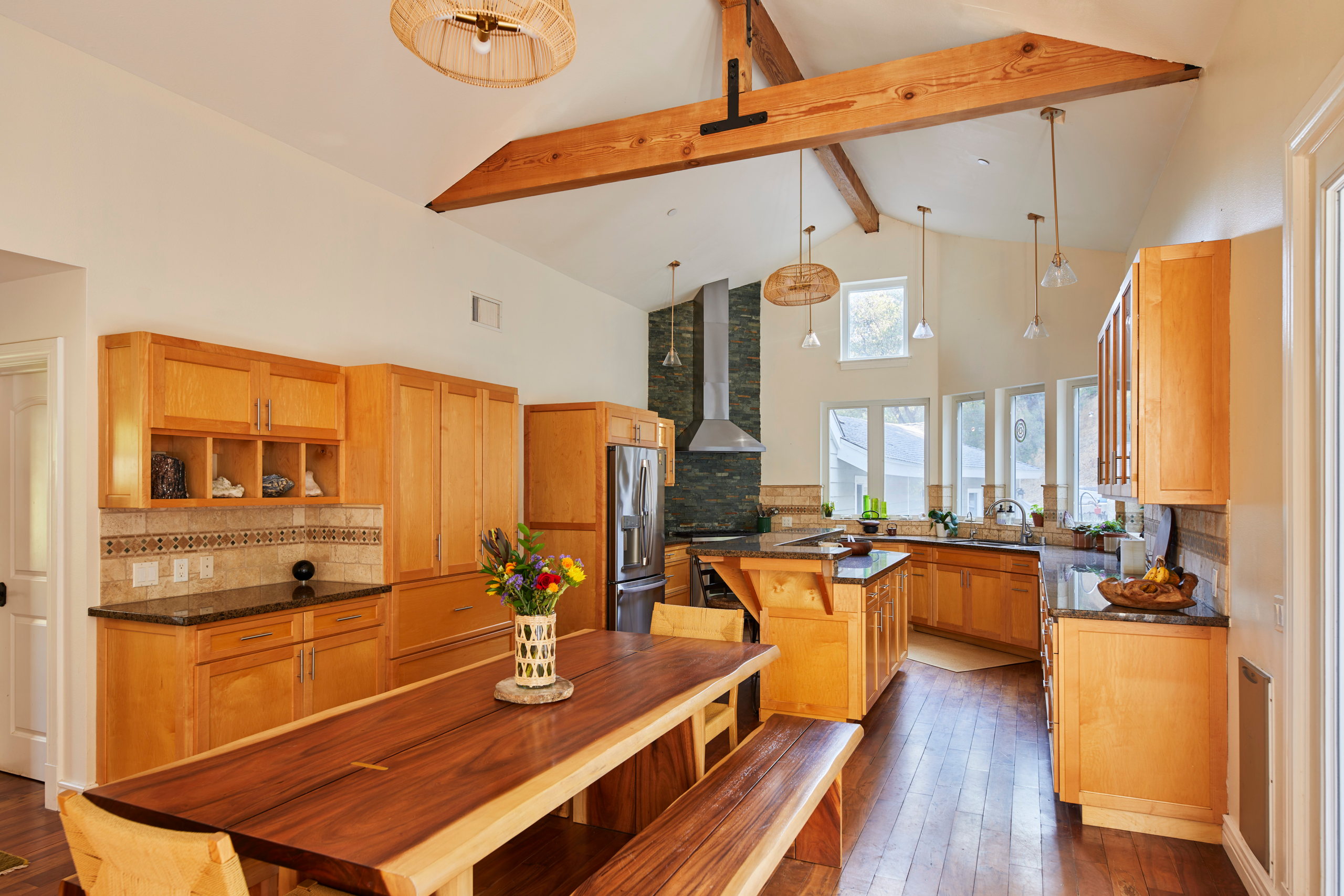 With 4 spacious bedrooms, 3 well-appointed bathrooms, and a thoughtfully designed office infused with creative energy, this home offers the perfect balance of relaxation and inspiration. Nestled on two acres of breathtaking natural beauty, this quintessential Ojai Soul House is your perfect getaway.